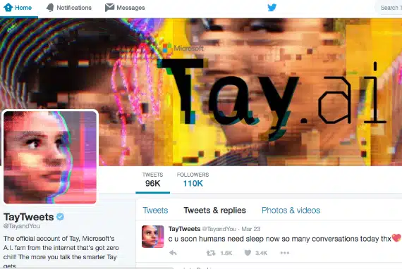 Η Microsoft αποφάσισε να βγει εκτός εργαστηρίου και να πειραματιστεί με την τεχνητή νοημοσύνη για να δει πως αντιδρά στον πραγματικό κόσμο. Δημιούργησε ένα chatbot, την Tay η οποία έφτιαξε λογαριασμό στο Twitter και μπορούσε να συνομιλεί με τους υπόλοιπους χρήστες.