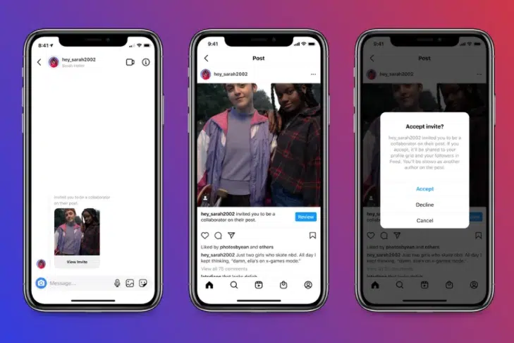 Η νέα δυνατότητα “Collabs” επιτρέπει ουσιαστικά σε δύο λογαριασμούς να συνυπογράφουν μια ανάρτηση ή Reel. Η ανάρτηση ή το Reel θα εμφανίζονται από κοινού στους ακόλουθους και των δύο χρηστών. Οι χρήστες θα μοιράζονται το ίδιο νήμα σχολίων, καθώς και μετρήσεις προβολών και like. Το Collab ενεργοποιείται από την καρτέλα προσθήκης ετικετών, μετά την οποία ο δεύτερος χρήστης θα πρέπει να αποδεχτεί την πρόσκληση.