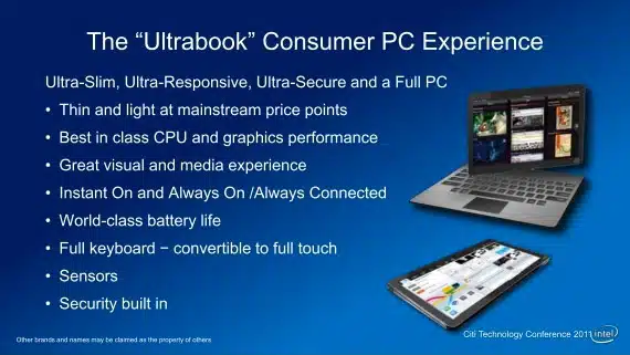 Σύμφωνα με προβλέψεις και ακολουθώντας πάντα τις τεχνολογικές εξελίξεις αλλά και τις επιταγές της αγοράς, στο σχετικά κοντινό μέλλον, τα ultrabooks θα μοιάζουν ολοένα και περισσότερο με τα tablets. Το ίδιο υποστήριξε και ο CFO της Intel, Stacy Smith στην ομιλία του στις 7 Σεπτεμβρίου, στο Citi Technology Conference που πραγματοποιήθηκε στην Νέα Υόρκη.