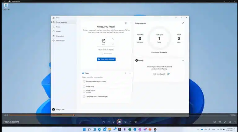 Κατά τη διάρκεια επίδειξης της λειτουργίας Focus Sessions, όπου ο υπολογιστής βοηθά τον χρήστη του να επικεντρωθεί σε μία συγκεκριμένη εργασία, εμφανίστηκε ένα αρχείο βίντεο, το οποίο παιζόταν με τη βοήθεια ενός media player, κάτι που άμεσα κυκλοφόρησε ως είδηση στο Internet, ότι, δηλαδή, η Microsoft ετοιμάζει την μεγάλη επιστροφή του Media Player στα συστήματα με Windows 11.
