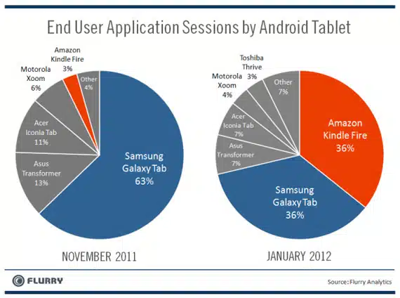 Σημειώνοντας πωλήσεις 4 εκατομμυρίων μόνο για το μήνα Δεκέμβριο, το Kindle Fire, το γνωστό tablet της Amazon, είναι μακράν το πιο επιτυχημένο budget tablet της κατηγορίας του, φυσικά στην αγορά των ΗΠΑ. Σε αντίθεση, τα ανταγωνιστικά Android tablets παραμένουν χαμηλά στις προτιμήσεις των καταναλωτών.