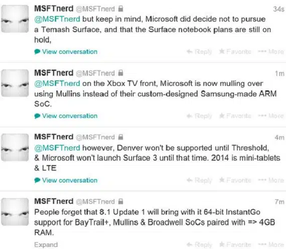 Εκτός από το Surface 3, η Microsoft θα ανακοινώσει και το Surface Mini, το οποίο επίσης θα βασίζεται στα Windows 8.1 Update 1, που θα προσφέρουν υποστήριξη InstantGo σε Intel BayTrail+, Broadwell και AMD Mullins SoCs. To AMD Mullins SoC φαίνεται πως ενδιαφέρει επίσης αρκετά την Microsoft για την επερχόμενη Xbox TV.