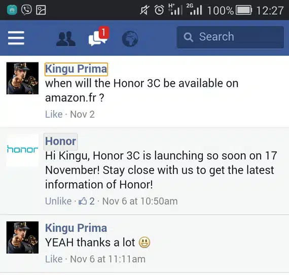 Huawei Honor 3C, Διαθέσιμο στην Ευρώπη στις 17 Νοεμβρίου