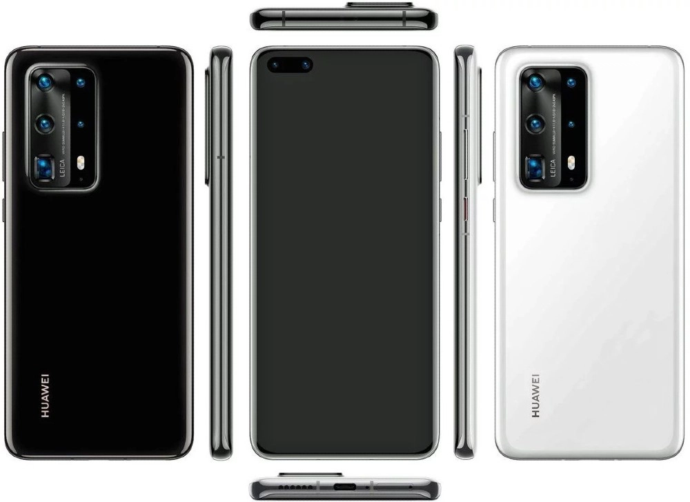 Renders για το Huawei P40 Pro αποκαλύπτουν dual punch hole στο front panel και πενταπλή κάμερα σε ορθογώνιο πλαίσιο στην πλάτη.