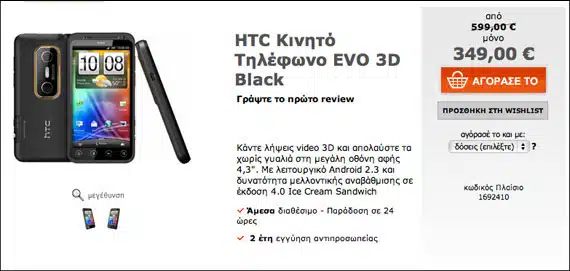 Το HTC Evo 3D (TechblogTV) με την οθόνη 4.3 ίντσες 3D και την κάμερα με το διπλό φακό 3D μπορείτε να το αποκτήσετε με 349 ευρώ. Αν θυμάστε καλά, όταν πρωτοκυκλοφόρησε κόστιζε 699 ευρώ! Πραγματικά πολλύ ακριβό όσο καλό και αν είναι το συγκεκριμένο smartphone. Κακά τα ψέματα, τίποτα δεν πουλάει πάνω από τα 649 ευρώ του iPhone εκτός και αν ονομάζεσαι Galaxy Note. Δείτε το TechDeal.