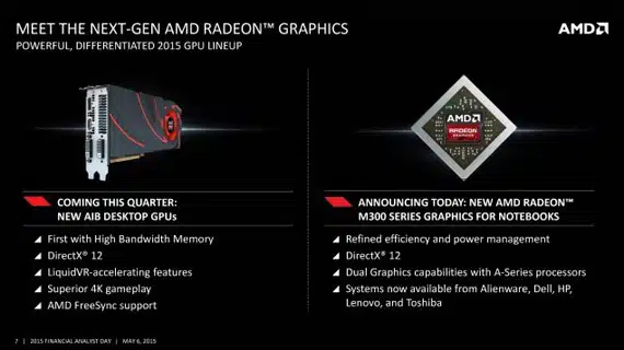 Επιπλέον η AMD ανακοίνωσε και τη διαθεσιμότητα καρτών γραφικών της σειράς AMD Radeon 300 και για σταθερούς υπολογιστές, η οποίες είναι διαθέσιμες κι αυτές για τους κατασκευαστές του τελικού chip (ΟΕΜ).