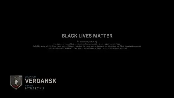 Το Call of Duty και η Infinity Ward στηρίζουν την ισότητα. Είμαστε κατά του ρατσισμού και της αδικίας, που αντιμετωπίζει η Μαύρη κοινωνία. Μέχρι να υπάρξει αλλαγή και Black Lives Matter, δε θα γίνουμε ποτέ η κοινωνία που προσπαθούμε να γίνουμε», αναφέρει το μήνυμα στα δύο προαναφερθέντα παιχνίδια.
