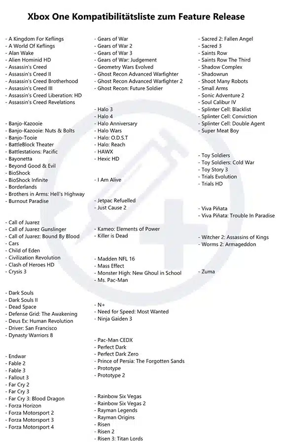 Η συμβατότητα των παλαιότερων τίτλων με το Xbox One ήταν το χαρακτηριστικό που επιθυμούσε η πλειοψηφία των κατόχων του Xbox One και η Microsoft θα κάνει την επιθυμία τους πραγματικότητα στις 12 Νοεμβρίου με δωρεάν αναβάθμιση που θα γίνει διαθέσιμη σε όλους τους κατόχους της κονσόλας. Μέσα στη λίστα δε θα μπορούσαν να λείψουν τίτλοι όπως η σειρά του Gears Of War, Assassin’s Creed, Banjo-Kazooie, Fable, Splinter Cell, BioShock και άλλα.